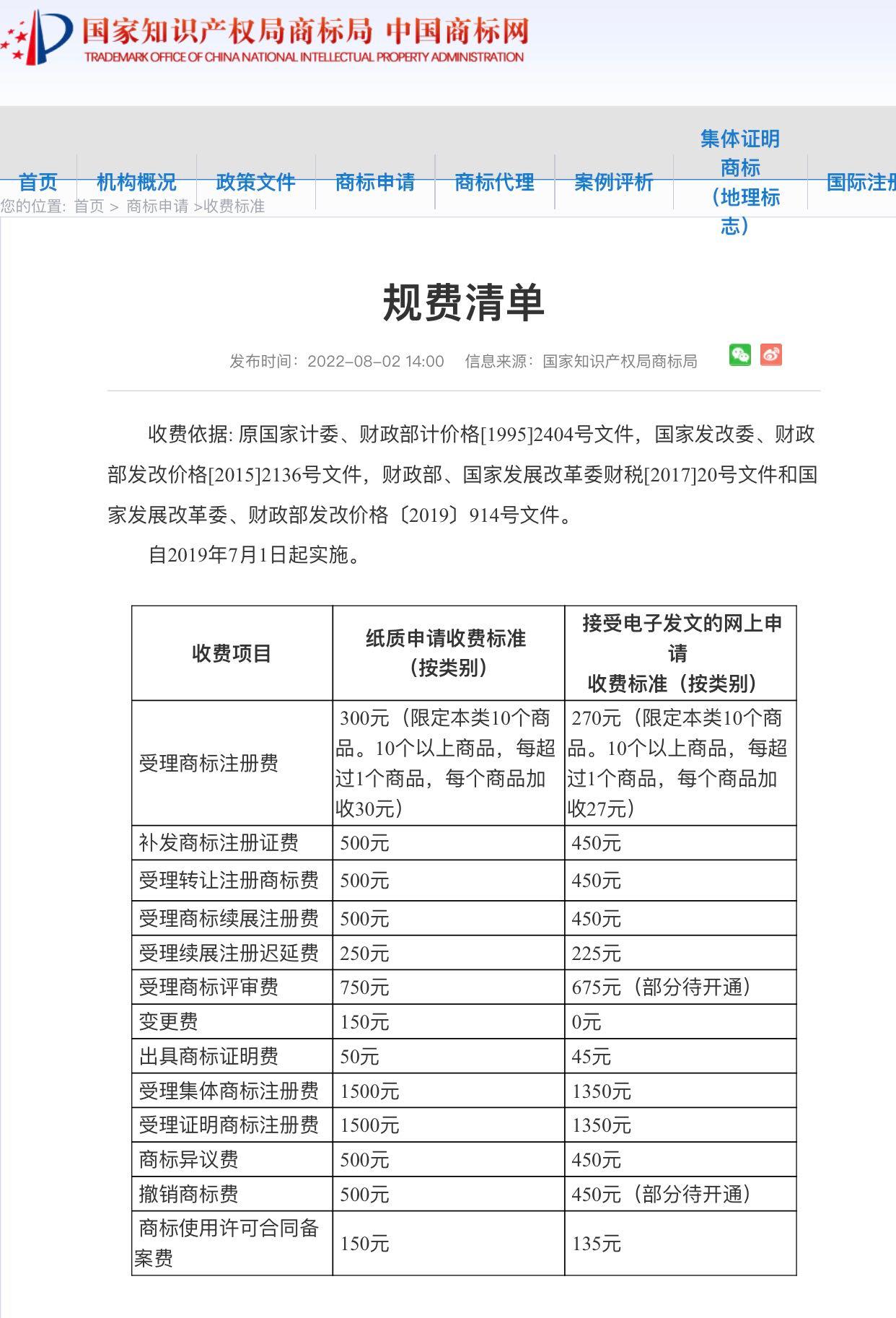 2).按電子發(fā)文的網(wǎng)上申請(qǐng)收費(fèi)標(biāo)準(zhǔn)?:按類別一個(gè)商標(biāo)270元,限定本類10個(gè)商品。10個(gè)以上商品,每超過1個(gè)商品,每個(gè)商品加收27元。